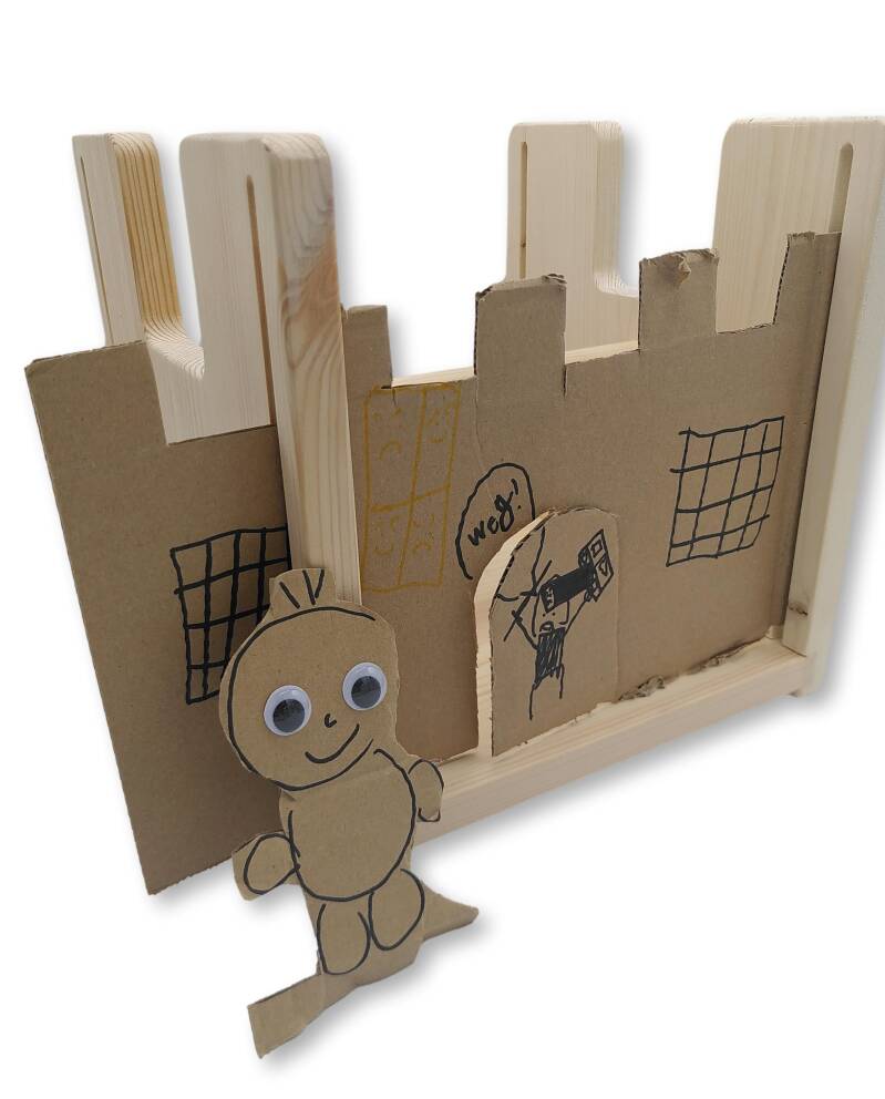 In elk huishouden is wel een stuk papier of karton te vinden. Met Speelkruk Mathilde is dit het startpunt voor fantasievol spel. Maak je eigen schuifdelen en verander de kruk in een kasteel, dierentuin of brug. Recycle een oude doos, gebruik plaatjes uit een tijdschrift..